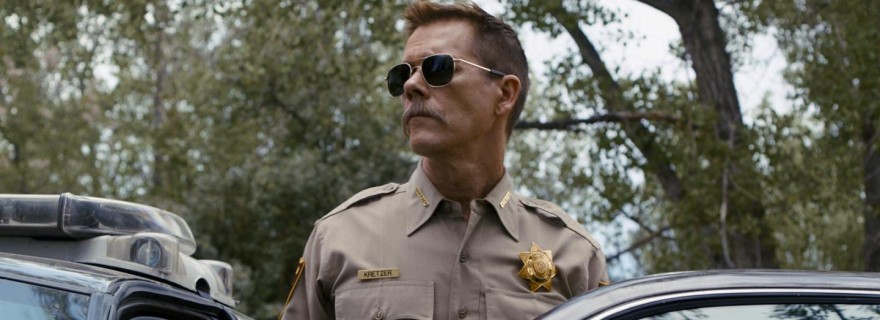 The filmmaker then takes a step back and we see that the car belongs to Sheriff Kretzer (Kevin Bacon), a dirty cop (see moustache) who left his vehicle unattended to dig a shallow grave and bury a body that’s currently locked in the trunk. Obviously, that means he’s none too thrilled when his car goes missing and he has to get it back quietly with no one else on the force noticing. So, looks like those kids found that trouble they were looking for, huh?
