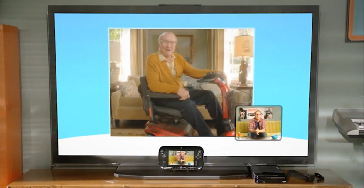 The example features an idiot who can’t get past a zombie and is forced to turn to the Wii U’s social networking interface for help. First, he posts a cry for help using the Gamepad. The touch screen facilitates typing, while allowing for some drawing as well. This leads to a phone call from his friend/enemy, who had read the post off of a cell phone. This sequence is followed by a Wii U video call with some older gentleman. Despite the painful way that Nintendo decided to introduce these features, they seem promising, more useful than just having Miis around. Thankfully, there’s no hint of Friend Codes. Oddly absent, however, is anything comparable to the Xbox 360’s in-game voice chat, which might have alleviated the need for a cell phone.