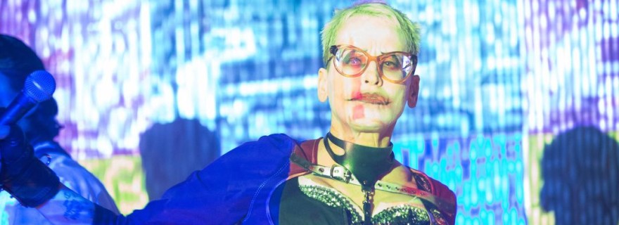 While Alfred recuperates in the hospital, Bruce slips away and heads to an underground punk club called Celestial Gardens. There he finds a woman named Jeri (Tank Girl herself, Lori Petty), who fronts a band while wearing Joker makeup and projecting images of Jerome and the Maniax onto the stage. (I suppose she’s taken the name Jeri as if she’s a female Jerome.) If her short hair, weird makeup and dominatrix attire are meant to be sexy in a Harley Quinn precursor sort of way, the effect doesn’t work. The whole get-up is really unflattering on Petty, but she makes it work in service of the character, who’s a major loon.