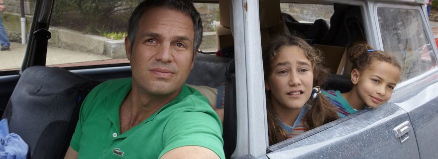 Mark Ruffalo stars as the beating heart of Maya Forbes’ autobiographical debut film as director. (Her screenwriting credits include ‘The Larry Sanders Show’, ‘The Rocker’, and ‘Monsters vs. Aliens’.) He gets one hell of an introduction in a lovingly shot 8mm home movie sequence showing how the bipolar dad experienced a manic breakdown after losing his job, forcing his wife (Zoe Saldana) to leave with their two daughters (Imogene Wolodarsky and Ashley Aufderheide). Ruffalo ends up in a mental institution sedated before eventually getting out and resuming his duties as fun dad, only now just on the weekends. Saldana moves the kids into a cramped Boston apartment, but decides that’s not enough and moves to New York to pursue an MBA. She leaves her daughters under the care of Ruffalo in her absence, and it’s in that weird, wild family space that the bulk of the film takes place.