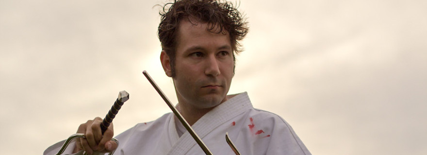 When directors Matthew Bauckman and Jaret Belliveau first point their cameras at Elliot Scott, the self-proclaimed Canadian kung-fu writer, director and star is hawking his latest DVDs outside a low-rent video store. He rattles on endlessly about his amazing talents and incredible films, while the directors cut to shots of the hilariously amateurish and awful movies that he really made. From the opening moments of ‘Kung Fu Elliot’, it becomes clear that the subject of the film is a dolt, but at least an endearingly funny dolt. It feels like Bauckman and Belliveau have made a variation on ‘American Movie’ with chopsocky substituted for horror. It’s cute and funny and maybe a little mean, but certainly an entertaining enough quirky character doc. Then as the filmmakers keep following Elliot, a far darker character portrait begins to emerge, and the movie becomes far more interesting for it.