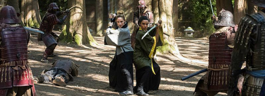 The Waverider follows Ray and Nate’s trail to 1641. Mick is obsessed with ninjas but Vixen thinks they’re a myth. Sara fights some samurai and Ray escapes captivity, but the shogun is wearing the A.T.O.M. suit and has figured out how to make it shoot lasers. When they find Nate, he warns that leaving the suit with the shogun will seriously mess up history. (Ya think?!) He also says he won’t leave Masako. Sara decides that their best course of action is to defend the village, ‘Seven Samurai’ style.