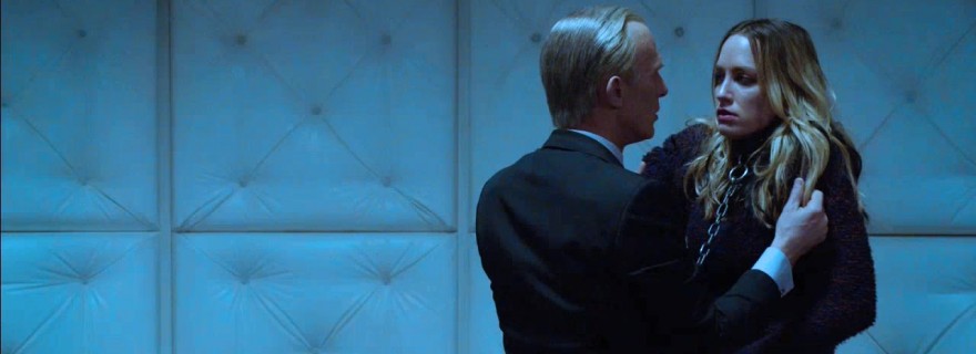 Meanwhile, Dutch briefly develops a little backbone when Eichorst leaves the room for a moment. She manages to wriggle a can of mace out of the dead cop’s belt. When Eichorst returns, she sprays him in the face, grabs the keys to her chains, and runs. Unfortunately, as she dashes down a stairwell, she discovers that it’s been walled off halfway to the bottom. Eichorst catches up and grabs her.