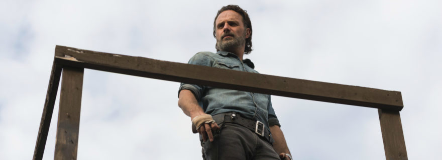 Rick has a standoff with Jadis and offers to make her a better deal, but she shoots him in the pelvis and takes his gun. Jadis drags Rick over to Negan. He’s already taken Carl hostage and makes them both get on their knees. Rick hears a scream and sees what he assumes is Michonne falling off the house to her death. (We only see it happen from a distance, which of course means that it wasn’t actually Michonne.) Rick is horrified. Negan gloats. He says he’s going to kill Carl now and then use Lucille to smash both of Rick’s hands. Rick nonetheless remains defiant. He vows once again to kill Negan. Negan is impressed, not that it will stop him from doing what he promised.