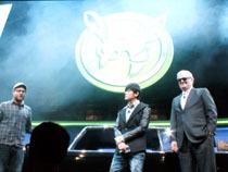 To introduce the conference, a 3D video plays on a massive screen that must be something like 70 feet long and 15 feet high. The video is impressive, and leads into an extended trailer for the upcoming film ‘Green Hornet.’ At the end, the stage revolves and out comes the Green Hornet's car carrying Sony president Howard Stringer along with the movie’s stars Seth Rogan and Jay Chou.