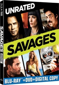 'Savages' Blu-ray Date Change[teaser]Oliver Stone's adaptation of the best-selling novel by Don Winslow is now coming to Blu-ray in November. [/teaser] As previously reported, Universal Studios initially scheduled 'Savages' for a Blu-ray release on October 23, but now the date has been changed to November 13. Laguna Beach entrepreneurs Ben, a peaceful and charitable Buddhist, and his closest friend Chon, a former Navy SEAL and ex-mercenary, run a lucrative, homegrown industry - raising some of the best marijuana ever developed. They also share a one-of-a-kind love with the extraordinary beauty Ophelia. Life is idyllic in their Southern California town....until the Mexican Baja Cartel decides to move in and demands that the trio partners with them. When the merciless head of the BC, Elena, and her brutal enforcer, Lado, underestimate the unbreakable bond among these three friends, Ben and Chon - with the reluctant, slippery assistance of a dirty DEA agent - wage a seemingly unwinnable war against the cartel. The Blu-ray/DVD/Digital Copy combo pack will feature 1080p video, a DTS-HD Master Audio 5.1 soundtrack, and supplements will include: Feature Commentary with director Oliver Stone; Feature Commentary with producers Moritz Borman, Eric Kopeloff, Co-Screenwriter/Novelist Don Winslow, Executive Producer/Co-Screenwriter Shane Salerno and Production Designer Tomás Voth; Stone Cold Savages – A five-part profile of the film showcases the entire cast and crew as Oliver Stone pushes his loyal and talented company far past their limits in order to bring this story to life; Deleted Scenes; pocket BLU; Advanced Remote Control; Mobile-To-Go; and BD Live. Suggested list price for the Blu-ray is $34.98. You can find the latest specs for 'Savages' linked from our Blu-ray Release Schedule, where it's now indexed under November 13.Posted Mon Sep 17, 2012 at 06:00 AM PDT by: -