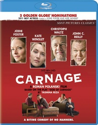 'Carnage' Blu-ray Announced[teaser]The latest film from Roman Polanski is slated for Blu-ray release in March. [/teaser] In an early announcement to retailers, Sony has slated 'Carnage' for Blu-ray on March 20. Two pairs of parents hold a cordial meeting after their sons are involved in a fight, though as their time together progresses, increasingly childish behavior throws the evening into chaos. The Blu-ray will feature 1080p video, a DTS-HD Master Audio 5.0 soundtrack, and supplements include: Actors' Notes, An Evening with John C. Reilly and Christoph Waltz, and On the Red Carpet. Suggested list price for the Blu-ray is $35.99. You can find the latest specs for 'Carnage' linked from our Blu-ray Release Schedule, where it's indexed under March 20.Posted Tue Feb 7, 2012 at 12:00 PM PST by: -