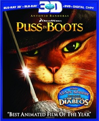 'Puss in Boots' Announced for Blu-ray and Blu-ray 3D[teaser]The swashbuckling spinoff is also coming to Blu-ray 3D in February! [/teaser] As previously reported, DreamWorks is preparing 'Puss in Boots' for a high-definition release on February 24, and now it looks like 'Puss in Boots - 3D' will be available on the same date. Antonio Banderas reprises his role as the sword-fighting cat in this animated prequel to 'Shrek.' The movie also stars the voices of Salma Hayek and Zach Galifianakis. Specs and supplements have yet to be revealed, but each release will be a combo pack with The Three Diablos animated short. Suggested list price for the Blu-ray is $40.99 and $49.99 for the Blu-ray 3D. You can find the latest specs for 'Puss in Boots' linked from our Blu-ray Release Schedule, where it's indexed under February 24.Posted Thu Dec 29, 2011 at 12:00 PM PST by: -