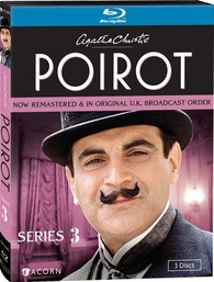 'Poirot: Series 3' Announced for Blu-ray[teaser]Agatha Christie's Belgian super sleuth will return to Blu-ray in March. [/teaser] In an early announcement to retailers, Acorn Media has just revealed 'Poirot: Series 3' for Blu-ray on March 6. In Series 3, David Suchet stars in eleven mysteries including: The Mysterious Affair at Styles, The Million Dollar Bond Robbery, The Plymouth Express, Wasps' Nest, The Tragedy at Marsdon Manor, The Double Clue, The Mystery of the Spanish Chest, The Theft of the Royal Ruby, The Affair at the Victory Ball, The Mystery of Hunter's Lodge, and How Does Your Garden Grow? The release will be a 3-disc set and will have a Dolby Digital 2.0 soundtrack, but supplements haven't been detailed yet.. Suggested list price for the Blu-ray set is $49.99. You can find the latest specs for 'Poirot: Series 3' linked from our Blu-ray Release Schedule, where it's indexed under March 6.Posted Fri Dec 30, 2011 at 09:00 AM PST by: -