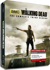 'The Walking Dead: The Complete Third Season' Blu-ray Announced and Detailed[teaser]No less than three Blu-ray editions of Season 3 will be available this August. [/teaser] In an early announcement to retailers, Starz/Anchor Bay is working on 'The Walking Dead: The Complete Third Season' for Blu-ray on August 27. In this uncertain world, Rick Grimes (Andrew Lincoln) and his band of survivors must not only fight the dead, but also face a whole new fear: the living. In this 16 episode season, the series Entertainment Weekly called the "greatest thriller ever produced for television", Rick and his fellow survivors continue to seek refuge in a desolate and post-apocalyptic world and soon discover that there are greater forces to fear than just the walking dead. The struggle to survive has never been so perilous. This season also introduces new characters, including the Governor (David Morrissey) and fan-favorite Michonne (Danai Gurira), along with her zombie pets. The 5-Disc Set will feature 1080p video, a Dolby TrueHD 7.1 soundtrack, and supplements will include: Audio Commentaries; Deleted Scenes; Never-before-seen featurettes; and More! Also available will be a collectible package featuring the infamous zombie head fish tank as well as a Target exclusive steelbook edition. You can find the latest specs for 'The Walking Dead: The Complete Third Season' linked from our Blu-ray Release Schedule, where it's indexed under August 27.Posted Tue Jun 4, 2013 at 06:55 PM PDT by: -